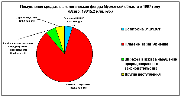 Для решения задач по улучшению состояния окружающей среды, компенсации вреда, причиненного ей загрязнениями и иными вредными воздействиями, а также осуществления других природоохранных мероприятий Мурманской областной Думой принят Закон "Об областном экологическом фонде" 3 июня 1997 года № 60-02-3МО.